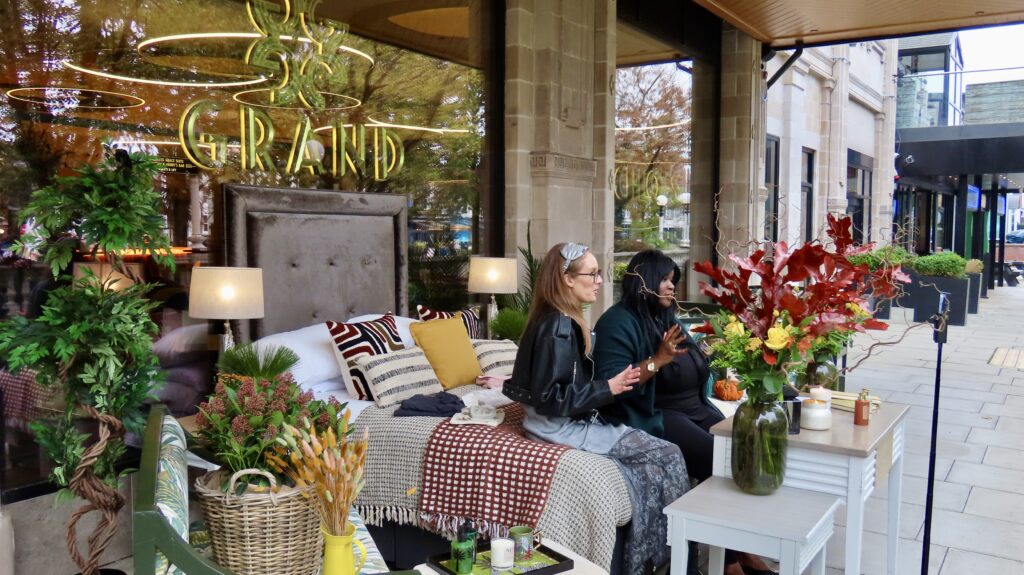 To mark the launch, the pair recorded their first episode outside The Grand on Lord Street, where they created a stunning outdoor bedroom installation as a nod to the opening topic, “The Luxury of Sleep.”